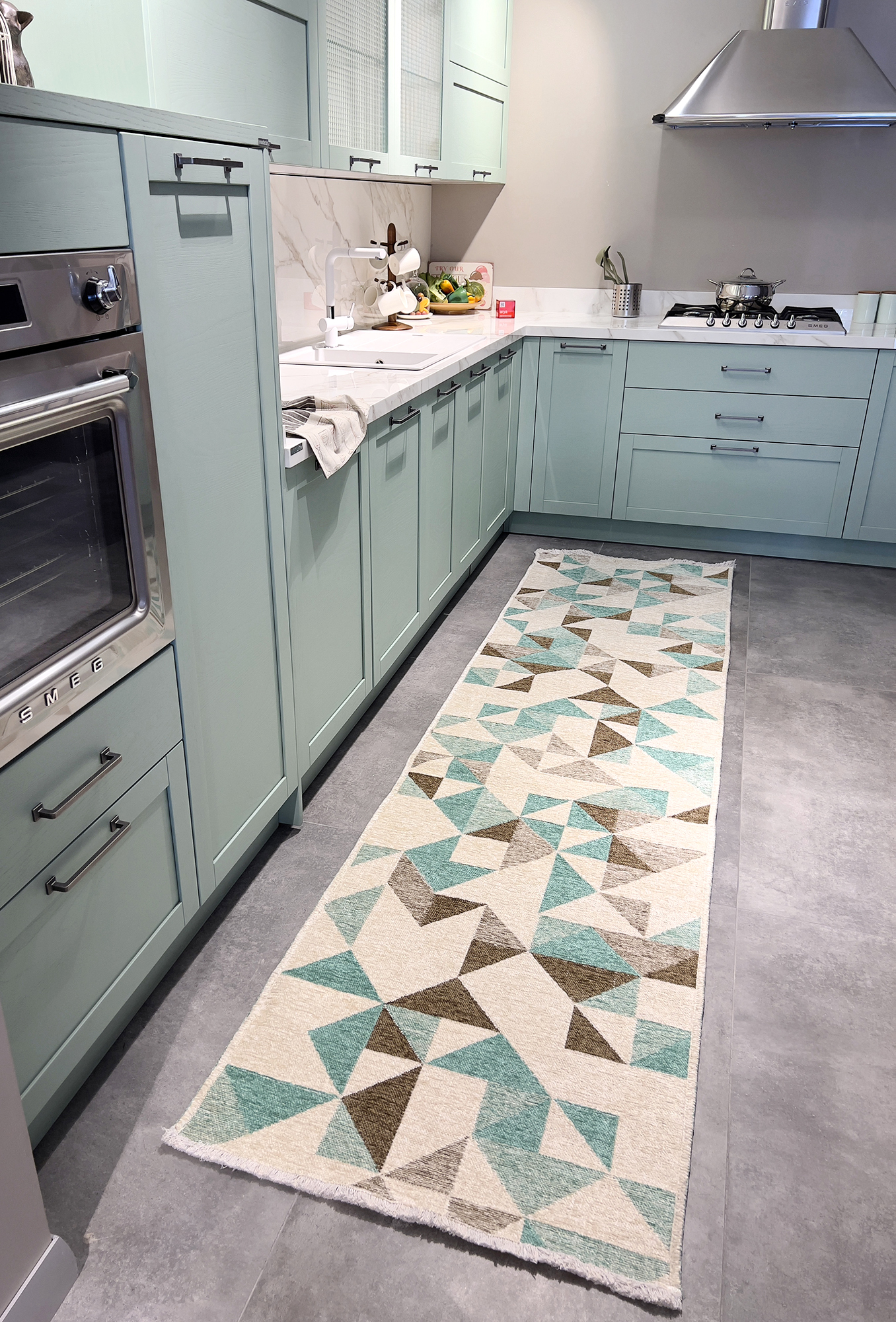Moretti Side Koleksiyonu halılar %60 pamuk %40 polyester iplikten çift taraflı kullanıma uygun teknikle dokunmaktadır. Her iki yüzündeki desenleri ve renk kombinasyonları ile evinizin dekorasyonunda eşyalarınızla uyumu yakalamak çok daha kolay olacak. Moretti Side çift taraflı halılarını salon, oturma odası, yatak odası, çocuk odası, mutfak, banyo, yolluk gibi evinizin bir çok farklı alanında kullanabilirsiniz. Yazlık veya kış bahçesi gibi  mekanlarınızda kullanım için de gayet uygun bir seçenektir. Dış mekan kullanımına uygun değildir.
